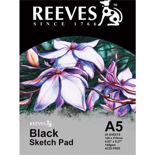 Reeves Sketch Pad A5 140gsm Black Paper 20 Sheet